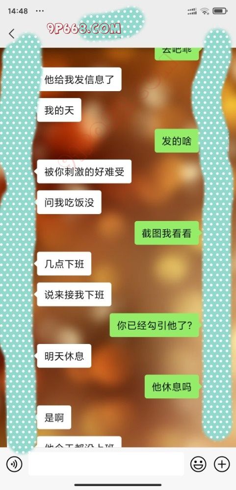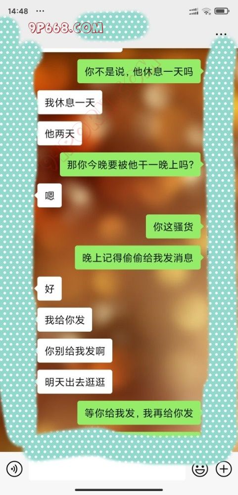 第二天老婆说他同事休息了,本来以为不会有故事了,没想到当天他同事居然就要约他(不知道老婆到底咋勾引的)